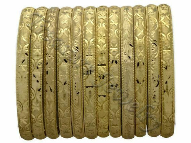 18K Gold Plated Diamond Cut Bangle Bracelets 12 Pcs
