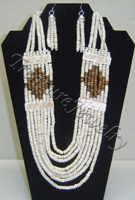 Agatha Horn / Bone Disks Necklace and Earrings Set