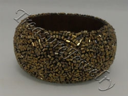 1.5 inch Wood Bangle Embedded With Seed Beads Glass Tubes