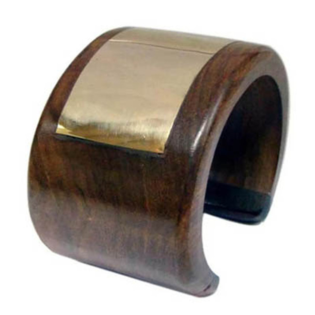 Handcrafeted Wooden Cuff with Brass Acent and Resin Ends