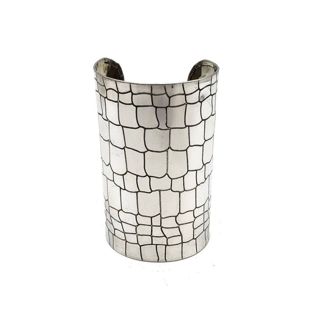 - Solid Brass Silver Tone Cuff with Laser Etched Scales Design