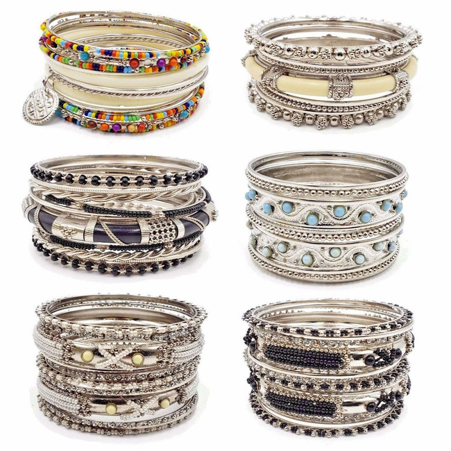 Bangle Set 6 Sets Wholesale Lot Assorted Mix Designs silver Plated overstock lot sale.