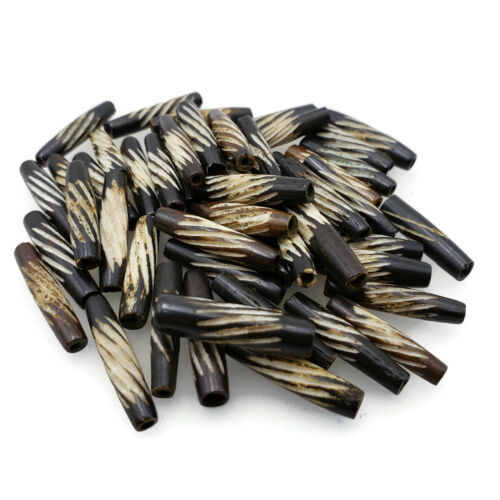 Carved Bone Beads Buffalo Bone Hair Pipe Beads Dark Brown Color .1" 50pc