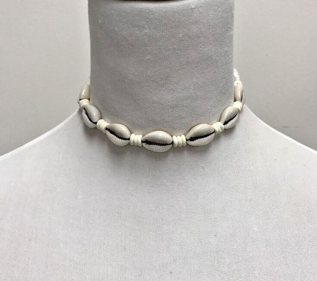 - A unique African style Cowrie Shell Necklace Hemp Choker with tiger cowrie shell and regular cowrie shells.