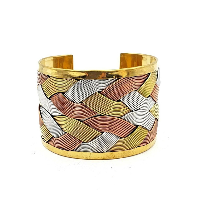Fashion Brass Cuff Gold Plated Three Tone Weave Braided Copper Brass Jewelry