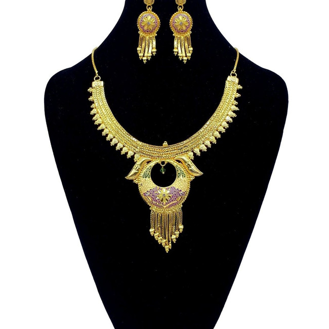 Indian Bollywood Gorgeous 18k Gold Plated Necklace Set With Matching Earrings.