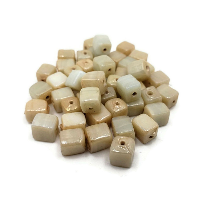 Glass Beads Cube 25pc High Quality Jewelry Making Beads Iridescent Luster