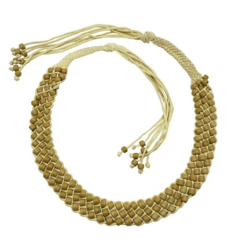 • Stylish Handcrafted Nylon Belt Embellished with Beige Tone Glass Pony Beads