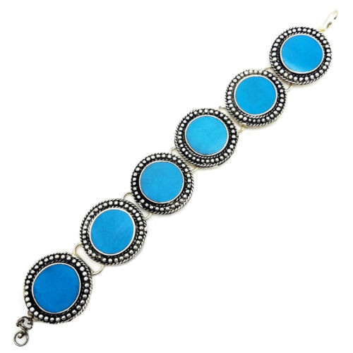 Stylish Turquoise Brass Bracelet in Navajo Native Indian Colored Antique Stone