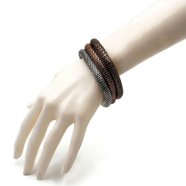Subira Three Tone Elastic Snake Chain Bracelet - 3pc Set