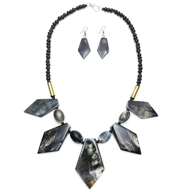 Ovia Buffalo Horn Bib Necklace and Earring Set